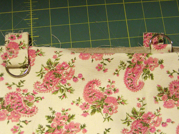 Then I made the small pieces that attach the hardware to the body of the bag, and sewed them to the top of the bag: