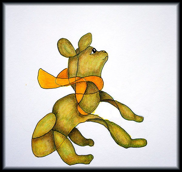 Here is the drawing that resulted from a scribble by Loryn. It’s funny but these are not as easy to do as my own. It’s hard to believe that a scribble is so distinctive to its owner, but I have found that the squiggle can even look like the person who drew the scribble. Go figure. Isn’t the human brain wonderful.