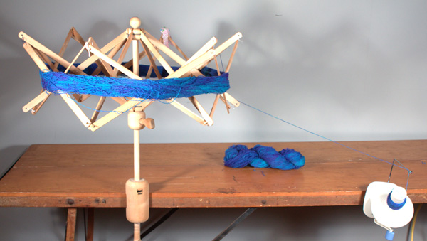 When you take the completed yarn off the swift, it looks like this. It’s easy to straighten back out by wetting and weighting it. But first, I plan to hand dye these two skeins.