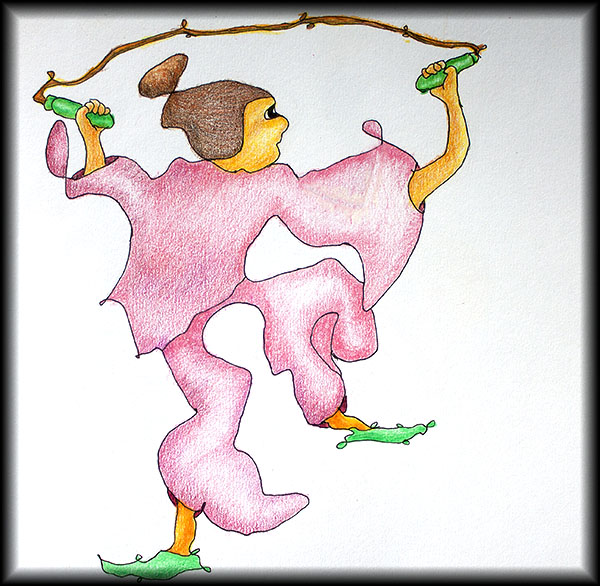 I used a complementary color scheme of red and green. I used the lighter tones of pink and light green and it makes for a nice contrast. The drawing uses only color pencils, not markers this time.