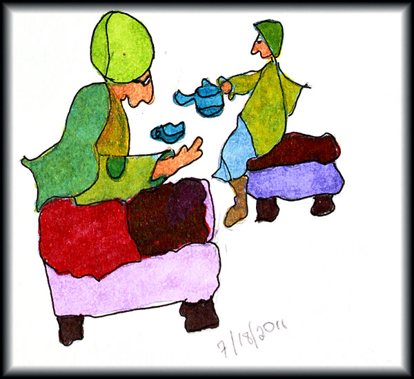 Daily Squiggle September 17, 2011Creativity, Squigglesart, cartoon, creativity, drawingthecraftysisters Two very proper ladies having tea. This is also an early squiggle. It is done entirely in marker. I like the spectacles on the lady in the foreground. -Lynne Share this: Click to share on X (Opens in new window) X Click to share on Facebook (Opens in new window) Facebook Like Loading... Related