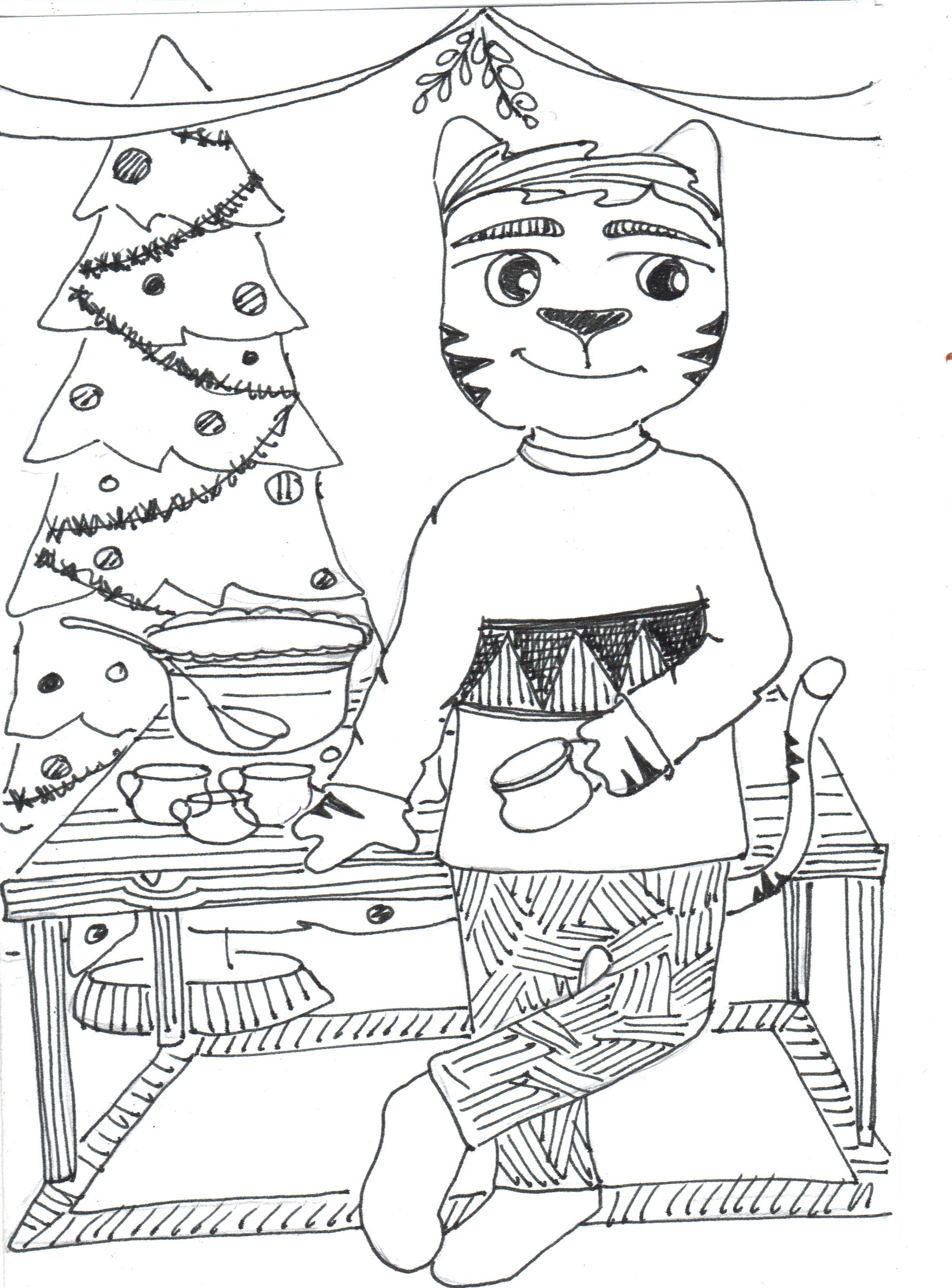 Lynne: I liked using scraps of wrapping paper to make my last ornament and I decided I would try to use up more of the pieces I have lying around. I found this tutorial on design and form with these terrific paper ornaments, but I don’t have that precision in my paper-cutting skills. Thus I drew a very loose, cartoon type tree and used that for my pattern.