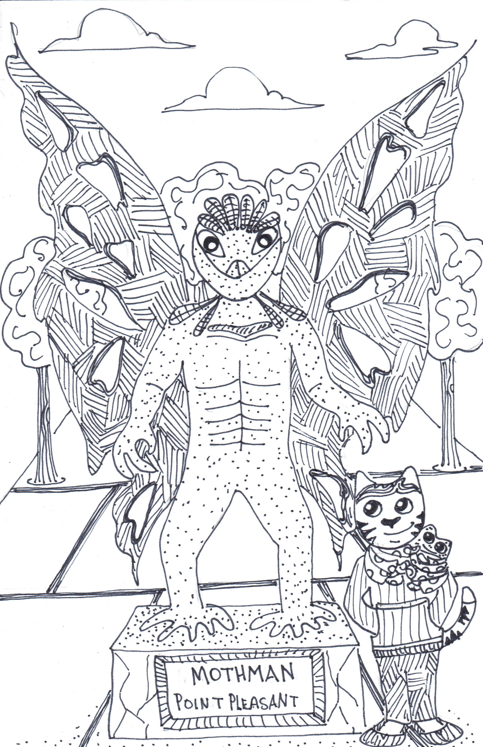 Checking out the Mothman Statue in Point Pleasant. West Virginia. What a cat!