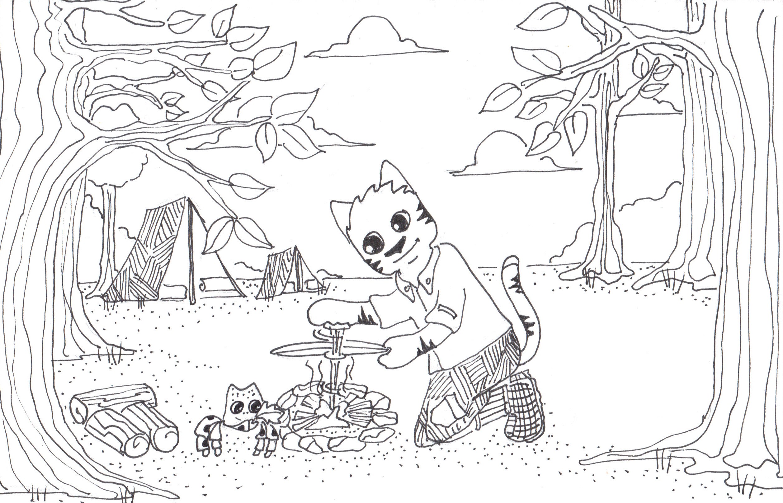 Working on their fire starting badge. What a cat!