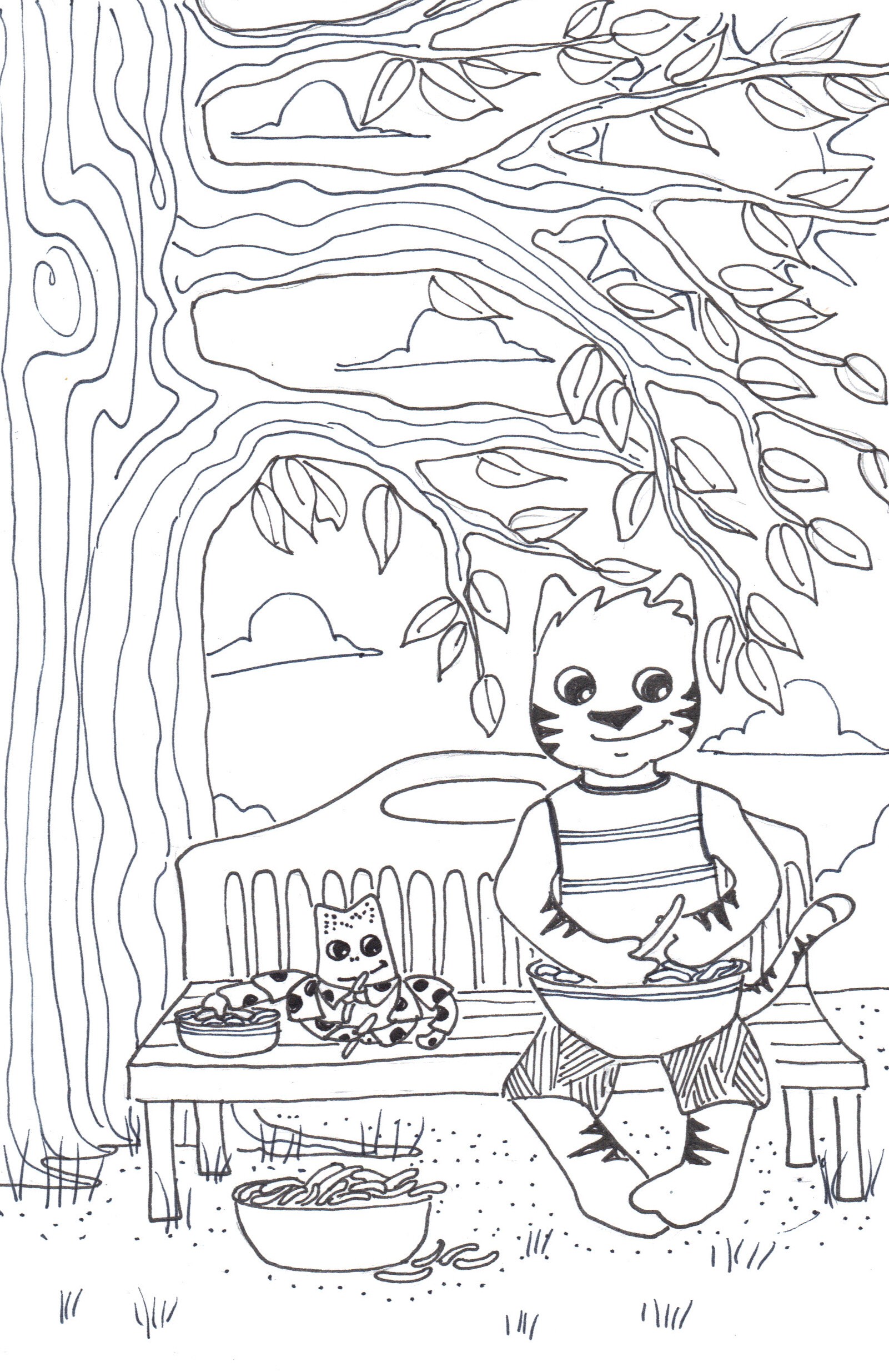 Snapping green beans. What a cat!