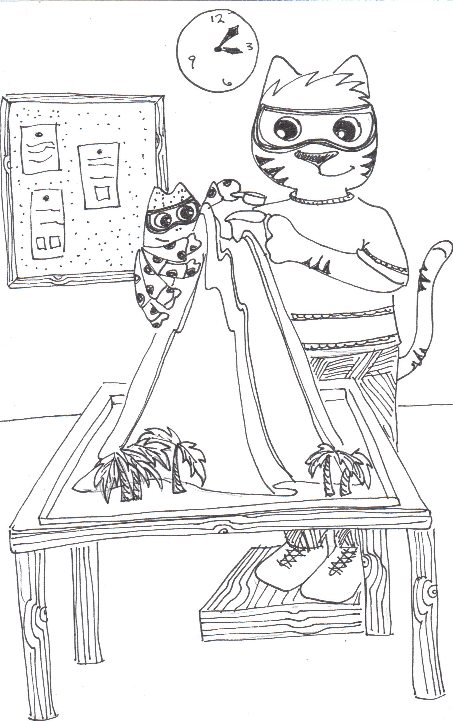 Never let the crab and cat in the copy room. LOL. What a cat!