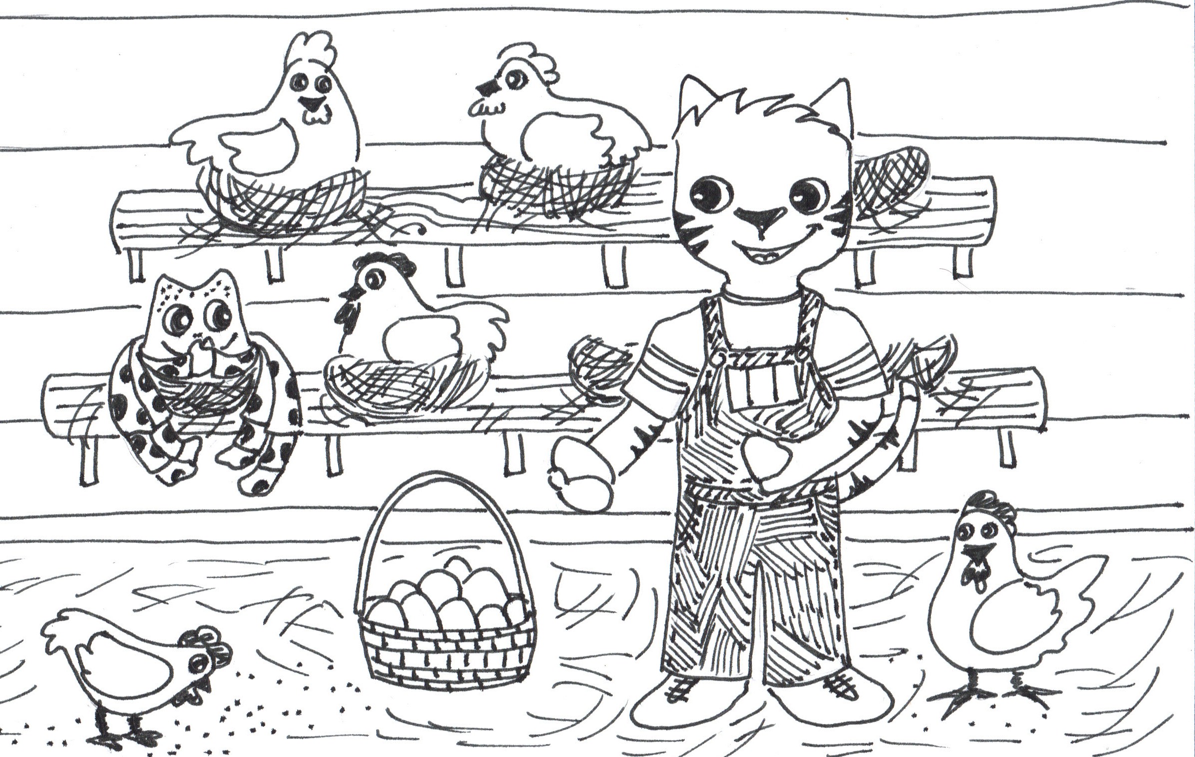 Collecting eggs. Nettie, you are not a chicken. What a cat!