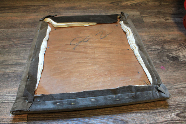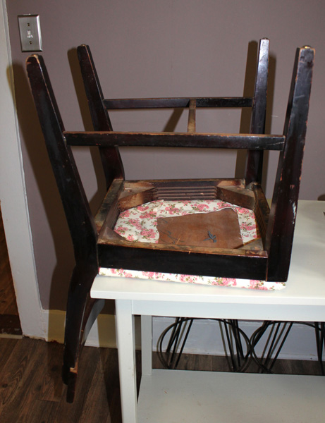 I just love how sub-staples make the finishing on the chair backs so easy! When I look at this chair compared to the first four, I just cringe.