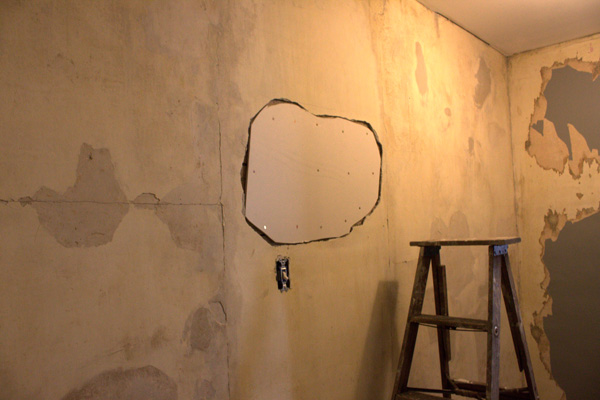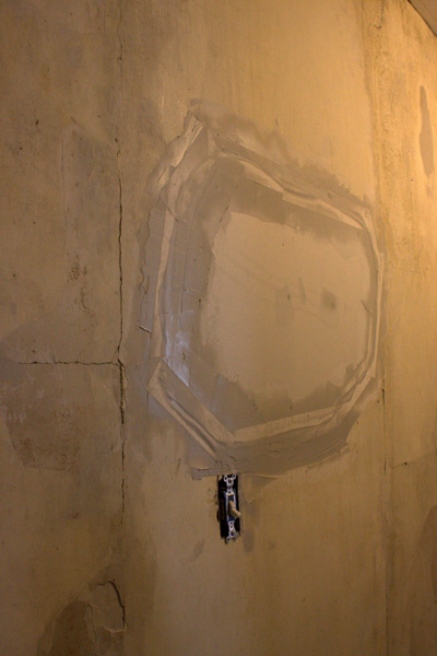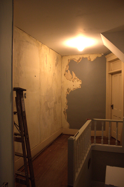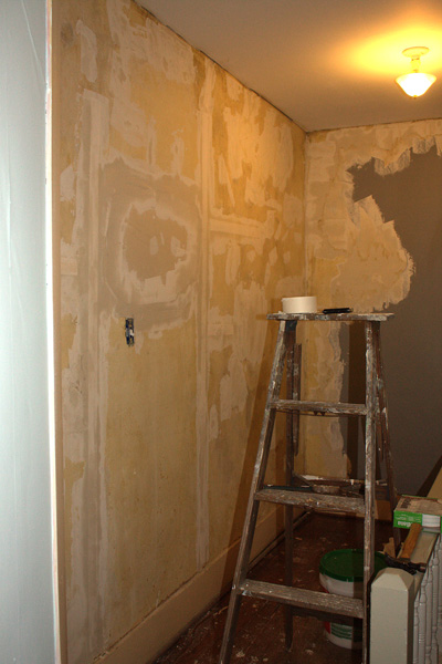 I have actually already re-upholstered four of the six chairs and had started on a fifth when I made a common (well, common for me) error in judgement. I tried to used a piece of vinyl that was just a little too small. I was running out of material and didn’t want to buy some more (this even though I would need to buy more to finish the last chair). I have a tendency to make this sort of decision when I am too tired and should really just put the project away for a while. Well, maybe I learned my lesson this time. Anyway, I had already taken the chair back off and it was mostly finished, when the problems with the too small piece of vinyl really became apparent. There was no way to hide the staples holding the vinyl in place as the staples could not be placed in their proper positions due to the smaller size of the vinyl. At this point, my frustration in having to take all those darn staples out yet again caused me to set the whole project aside for about a year and a half. Of course, all this time the chair has sat upstairs in my loft as an impalement accident waiting to happen as the chair back was never put back on.