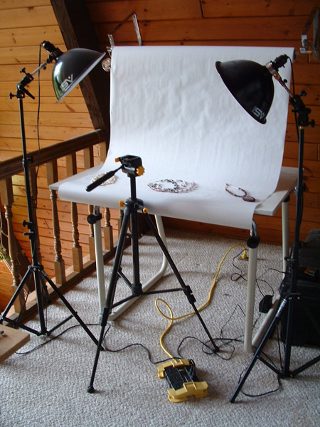 The difference in my photography before and after is rather dramatic. These are so much more clear and are visually interesting. Previously I had way too much white space and very little actual design. I would just drape the necklace in a circle and shoot the photo. Here I am trying to make the photos a little more dynamic. My camera is better than i remember it being (I haven’t used this one in a long time or all that often when I did use it) and the lights are wonderful (Thanks Loryn for letting me borrow them). My set-up is really pretty small and doesn’t take up a lot of space and being in a rather unused corner helps a lot. It is also really close to my worktable, so no more excuses for bad photos.