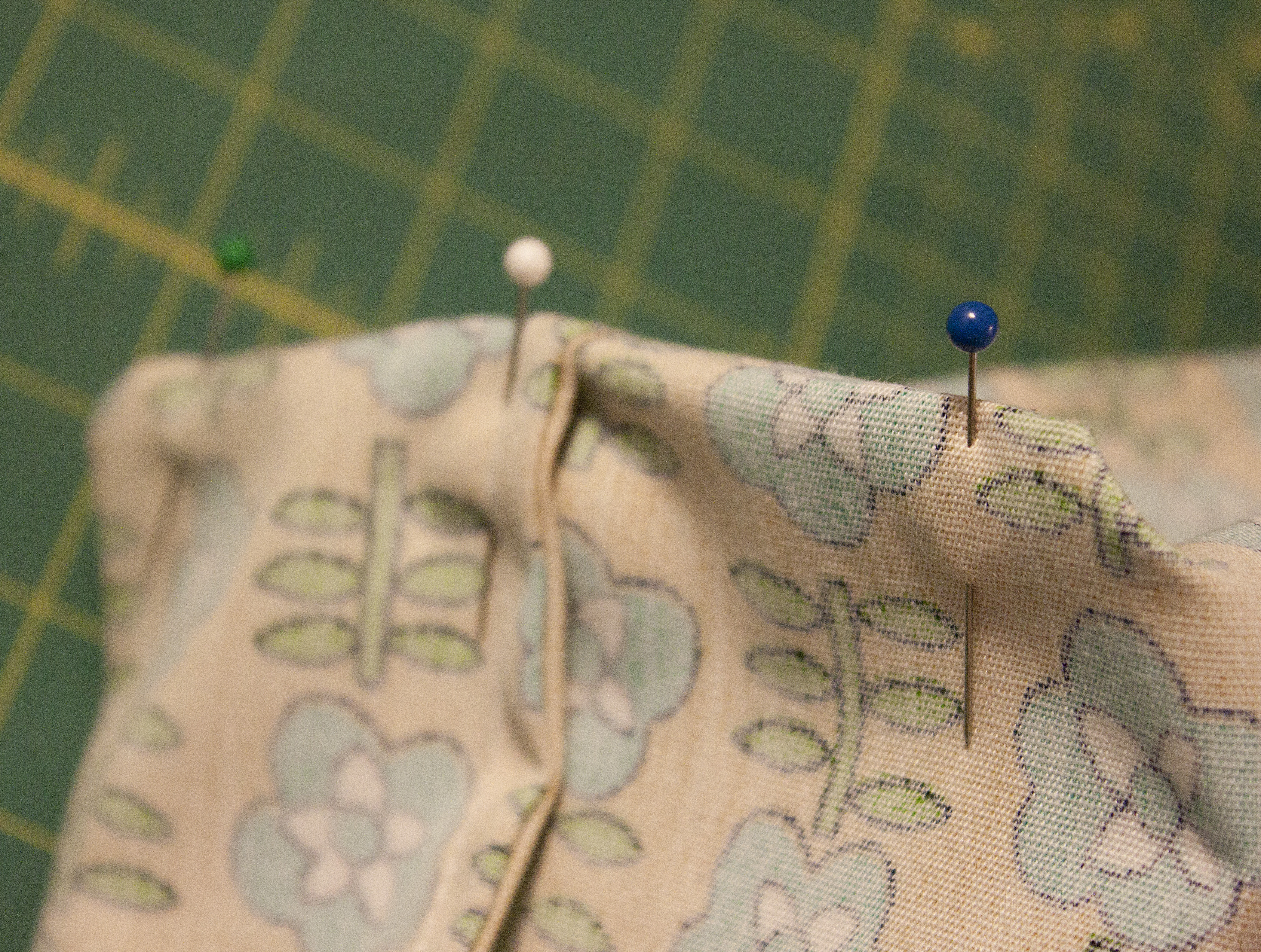 For these bags, I used a vintage 60s polyester canvas. I normally don’t like poly, but it does work well for an item that will get dirty and need to be laundered frequently. Plan on roughly 1/2 a yard per bag, plus extra for handles. For a four bag set like this, plan on 2 1/2 yards.