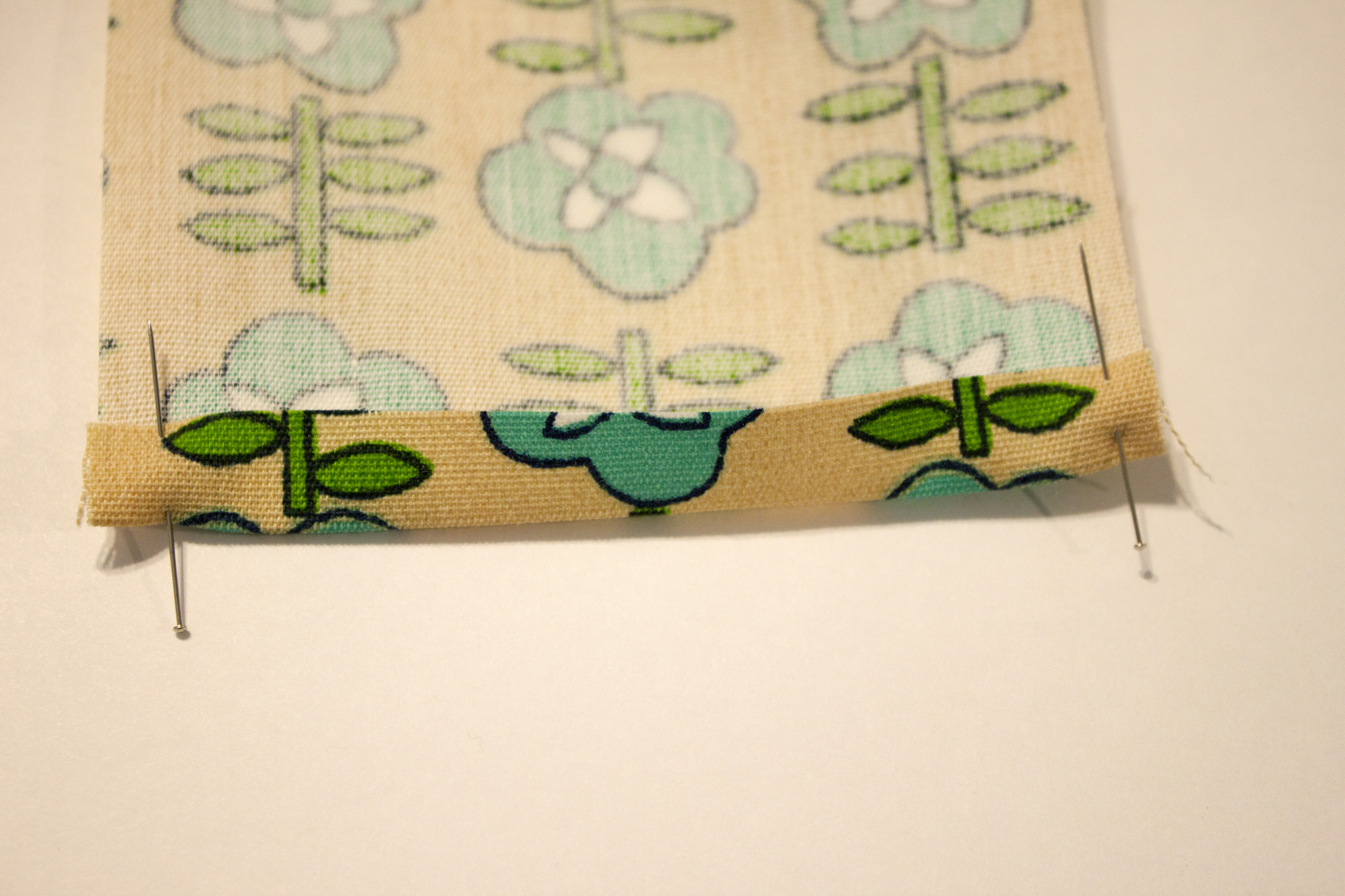 Fold a 1/2″ hem up at each end of the strip.