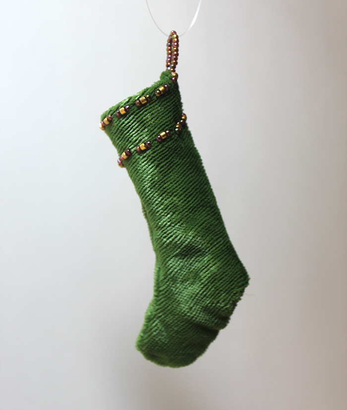 After you’ve sewn the first seam with right sides facing out, fold the seam so that the right sides are now facing in, as seen above. Your first seam and the raw edges will now be trapped inside a second seam.
