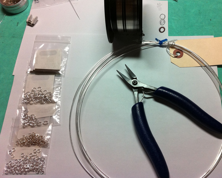 There is a new pair of flat-nosed Swanstrom pliers (hurrah!) that I absolutely love. I have needed some good flat-nose pliers as mine no longer close evenly if they ever did. I got a set of 6 diamond core Dremel drill bits in different sizes. Everything else I got was sterling silver. There are two sizes of wire, both round, half-hard. After that, the rest are different types of jumprings.
