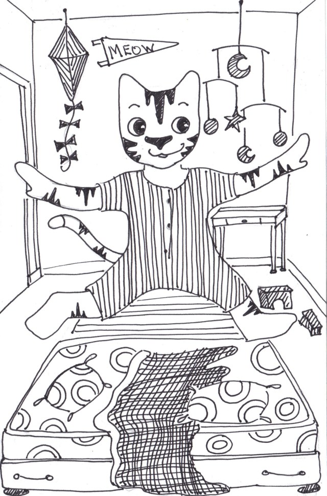 Bed Jumping. What a cat! August 18, 2012365, Creativity, Drawing, What a Cat!365, art, cartoon, cat, cat drawing, creativity, drawing, project 365thecraftysisters