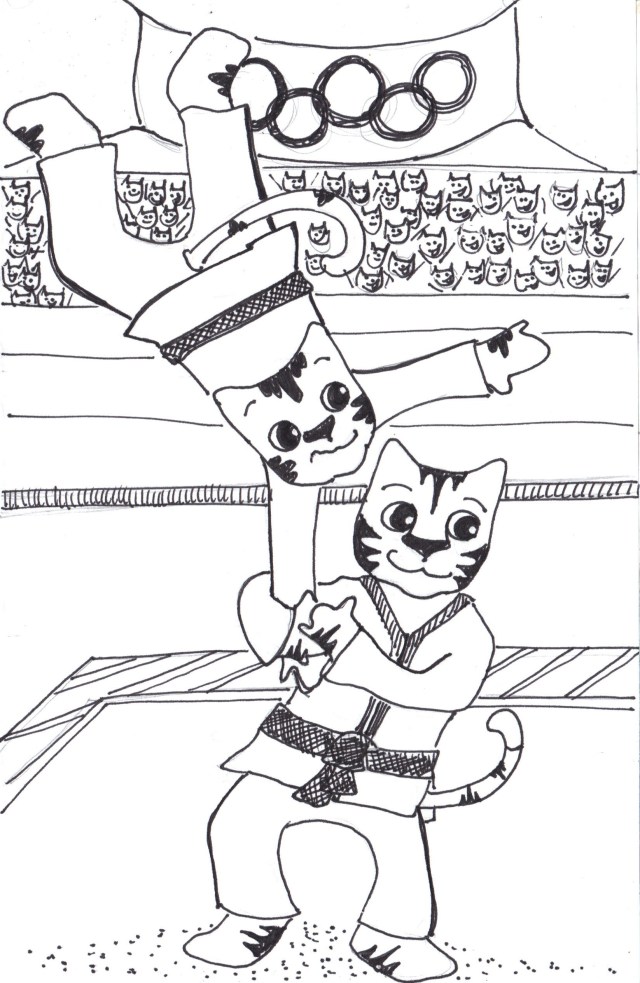 Doing Judo. What a cat! August 11, 2012365, Creativity, Drawing, What a Cat!365, art, cartoon, cat, cat drawing, creativity, drawing, project 365thecraftysisters