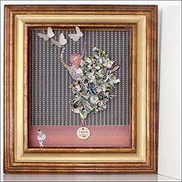 Cheri: At garage sales I am usually on the lookout for items that I can use in a collage. I have mentioned before that I like to purchase multiples of small items. My reasoning is; if you have a lot of one item you get the luxury of messing it up and having more to fill in if you really want to try it again. So, I have multiples of various items.