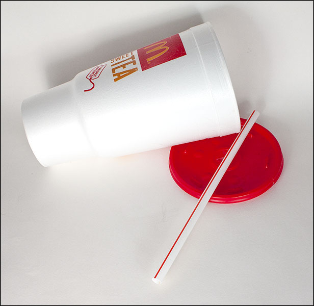 Crafty challenge number 3 is no one’s fault but my own. While I was making my hardware-store handbag for the last challenge, I began to think of a challenge that would be mostly confined to materials that were incidental to an item I had bought. Things that you do not buy to use, such as packaging materials, plastic sacks, and styrofoam drinking cups.