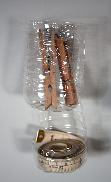 I also made two string holders by cutting the top and bottle of bottles off and fitting them together, and I used the top of a bottle as a funnel. There are a lot of possibilities with all of the different plastic bottles out there!