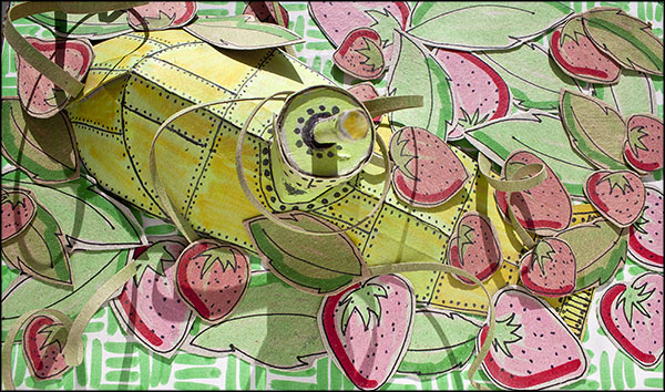 Then, I covered my outdoor, cheapy, plastic patio table with wax paper and laid out my wreath in preparation for painting. I sprayed the icicles with the silver spray paint. I did a very light coat as I wanted the bubbles in the plastic to show through. I also just wanted to hint at the silver color. Once it was dry, I flipped the wreath over and sprayed the other side.