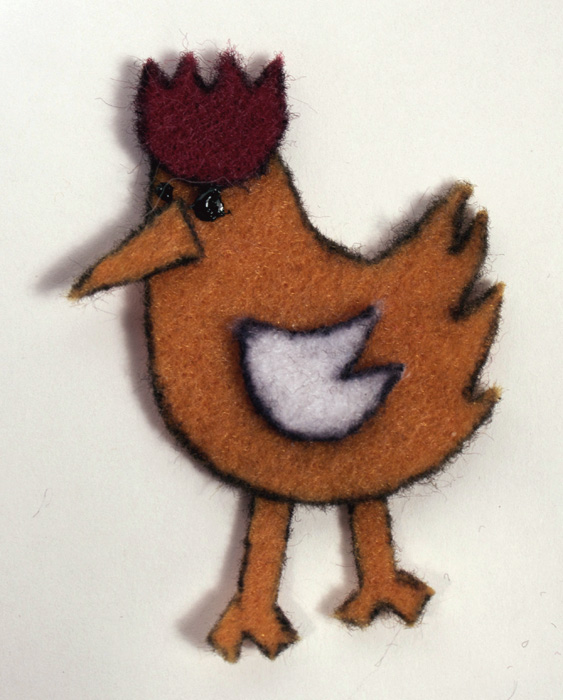And here is the first set of animals that I made in felt. The chickens are dangerous, let me tell you. I made the white one at the top first, and from there, they just got addicting and I just kept giggling and they just kept multiplying. The next thing I knew, there were ten chickens. So, there is a good sized flock of chickens to go with my felt farm now.