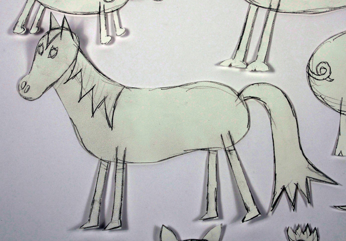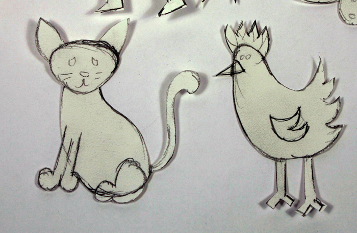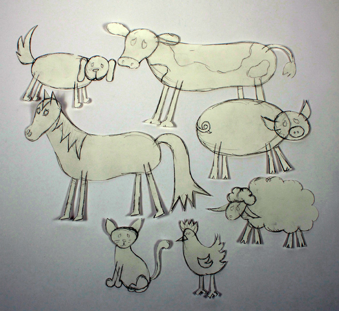 First, I needed some animal shapes. I couldn’t find anything online that I liked. Everything was either too simple or not cartoony enough. I ended up on Google Images looking at photos of real animals and drew my own.