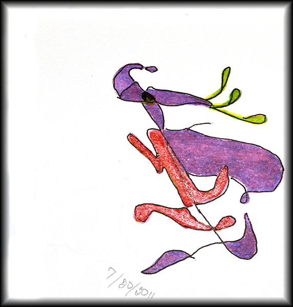I decided that I wanted to see what different positions I could put the squiggles in. I was amazed at their flexibility. These are done with markers with colored pencil shading.