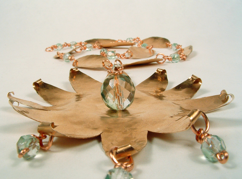 I really like how the hammered ovals came out looking like leaves. The hammering causes the copper to curl a little and I liked the affect so much that I left it and used the same affect in the star-burst pendant.