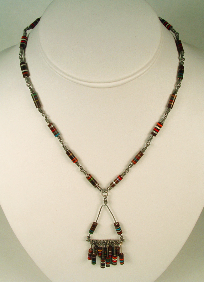 My entire necklace is made of resistors, even the hook and eye clasp. The wired ends make wire-wrapping a breeze.