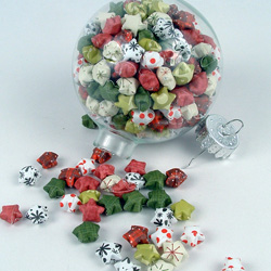 While I was cruising the net this morning for an idea for our Ornament Advent, I found an origami Christmas Star that used wrapping paper scraps. Since most of my wrapping for Christmas is done, I have lots of small pieces of paper lying around and was eager to try it.
