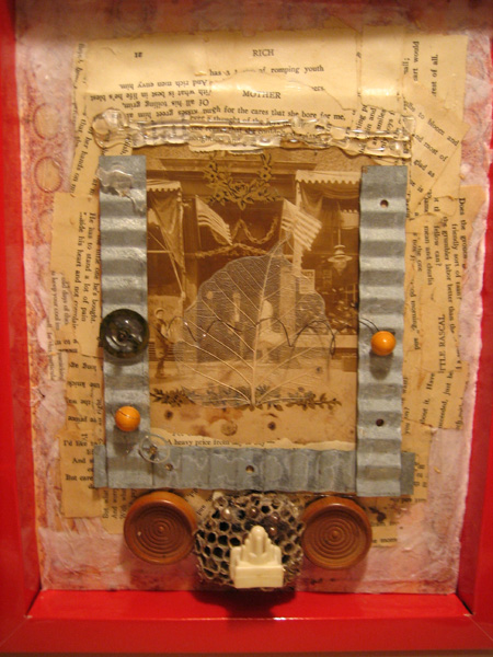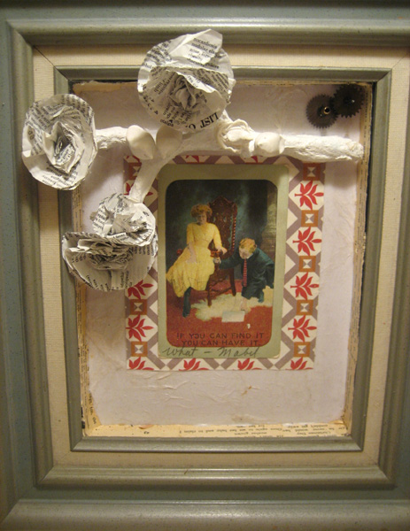 I love assemblage, or at least I love the idea of assemblage. I have a lot of interesting pieces of junk I have been collecting for a long time and I really was looking for a technique to pull some of these items together. After a few failed attempts at what I thought would be a no brainer for me, I learned that it was not nearly as easy as I thought it should be. My unrequited love of assemblage has resulted in several unfinished projects, some cussing and in the end some truly satisfying pieces. Actually, assemblage is basically a metaphor for life. How fitting.